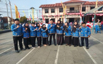 Bapak Ibu guru mengikuti upacara peringatan HUT ke-80 Republik Indonesia th. 2025