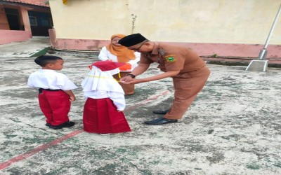Bapak Kepala sekolah secara simbolis menerima siswa baru untuk memulai MPLS 2025